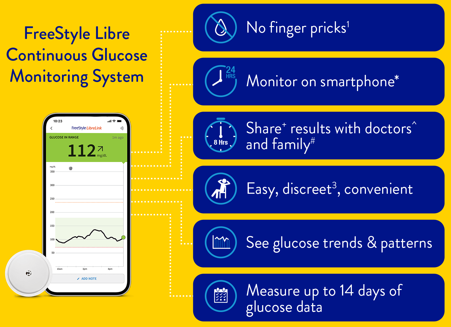 * The FreeStyle LibreLink app is only compatible with certain mobile devices and operating systems. Please check the website for more information about device compatibility before using the app. Use of FreeStyle LibreLink may require registration with LibreView